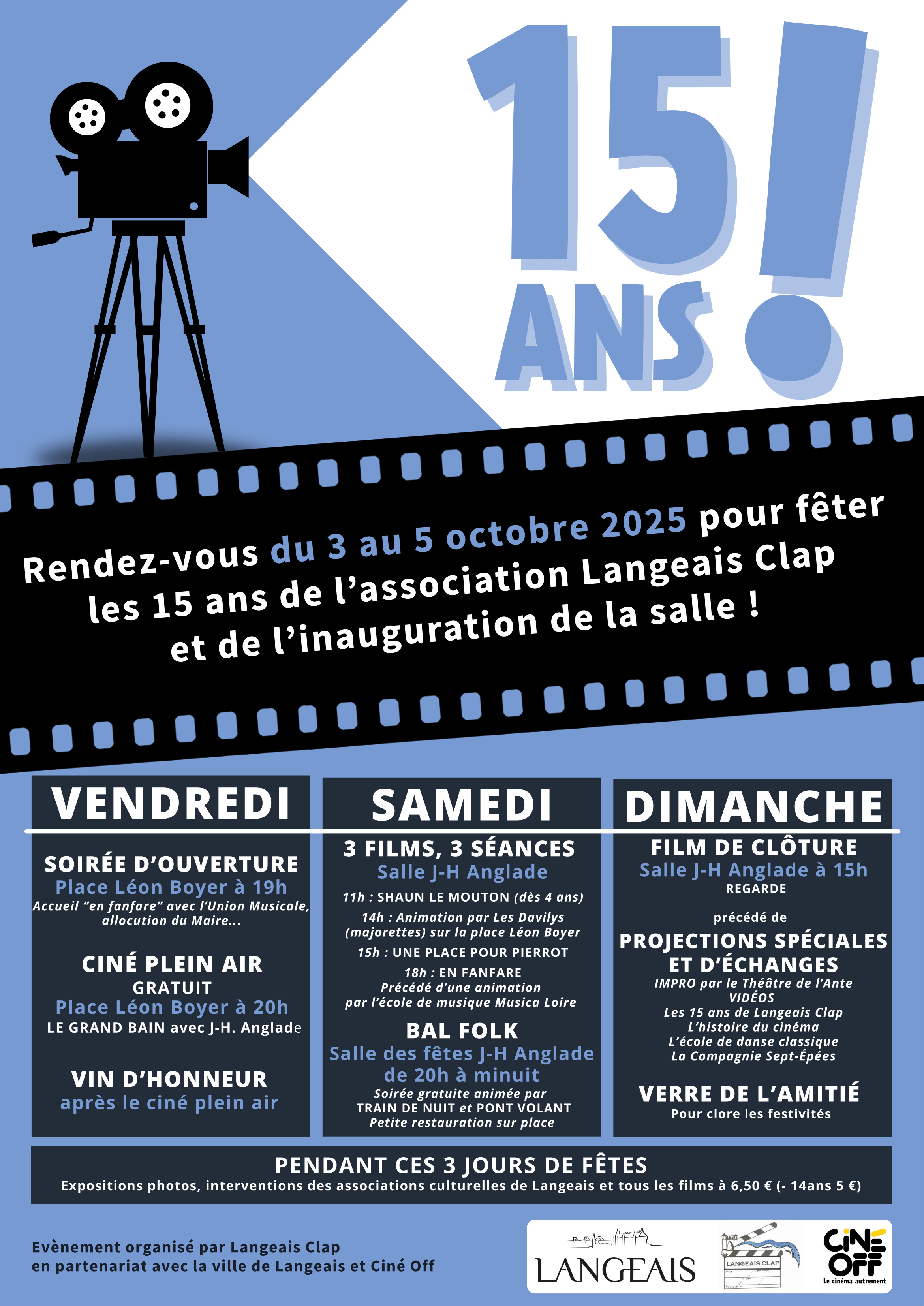 La salle de cinéma Jean-Hugues Anglade et l’association Langeais Clap soufflent leurs 15 bougies cette année !