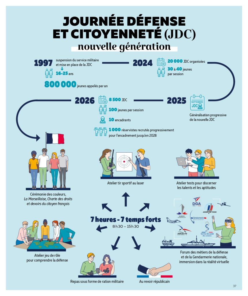 Chaque année, 800 000 jeunes sont appelés pour la Journée de défense et citoyenneté (JDC). Une nouvelle version de cette JDC a été mise en place depuis septembre 2025 afin d’obtenir une expérience plus immersive.